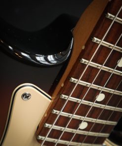 The American Stratocaster was the flagship U.S. made guitar. Features included a modern "C" shaped neck with 22 medium jumbo frets, Fender-branded Schaller tuning machines with staggered post heights for better string tension, a 2-point synchronized tremolo with stainless steel saddles, and three American Series single-coil pickups. This guitar is from 2006 and in very good condition. It has some players wear and little dents on the body and back. This guitar is fully checked and set up with D'addario XS 0.10's. It comes with the original hardcase and Fender strap and manual.Very Good