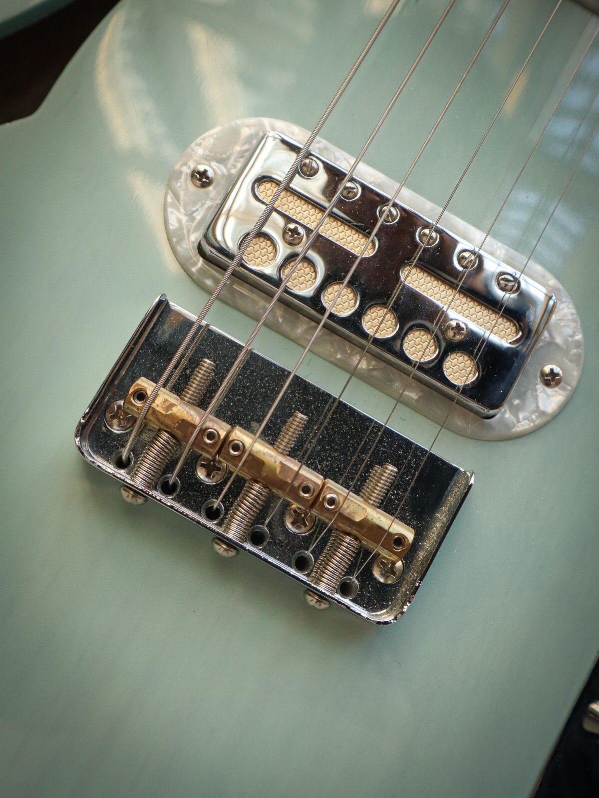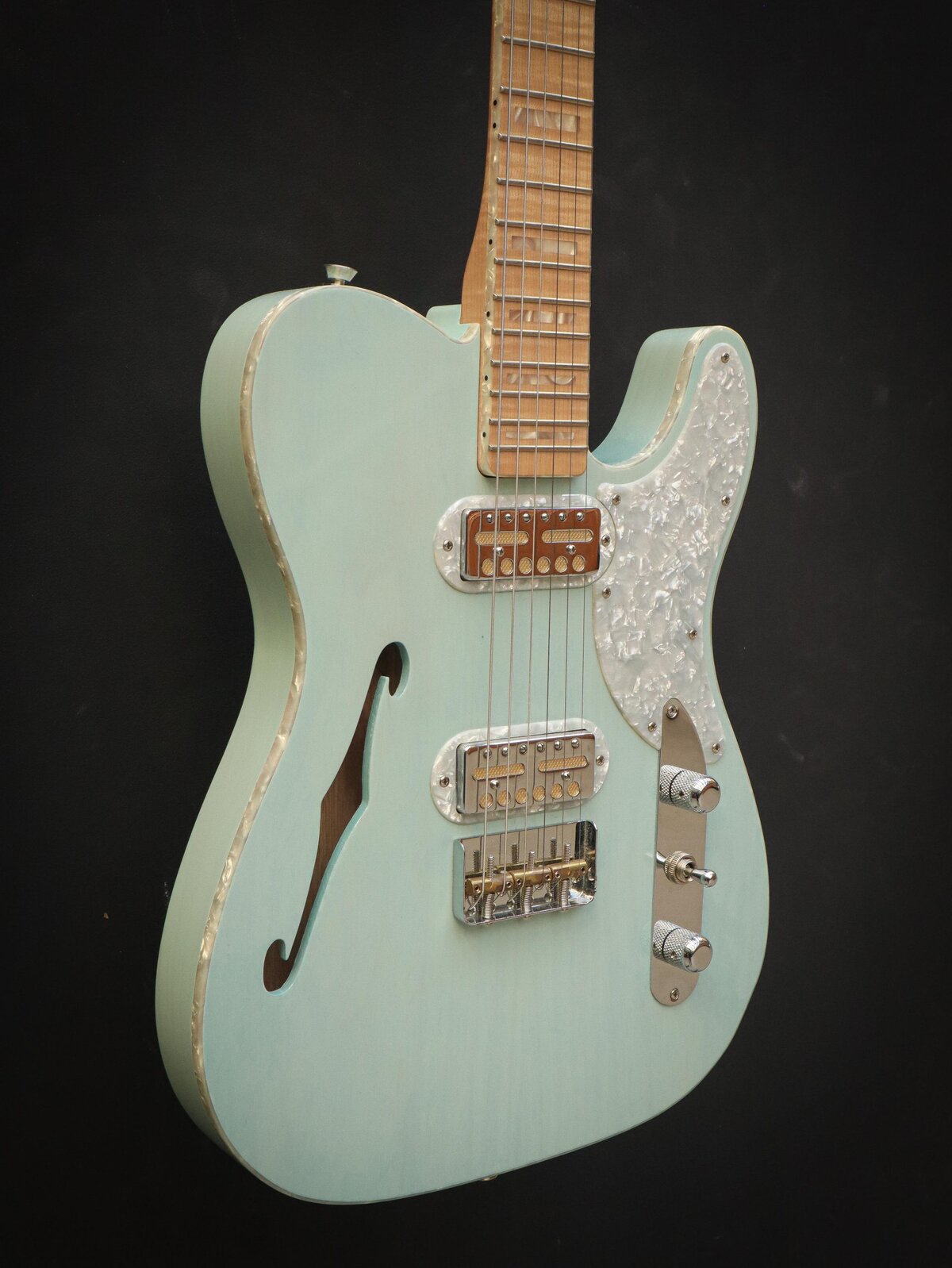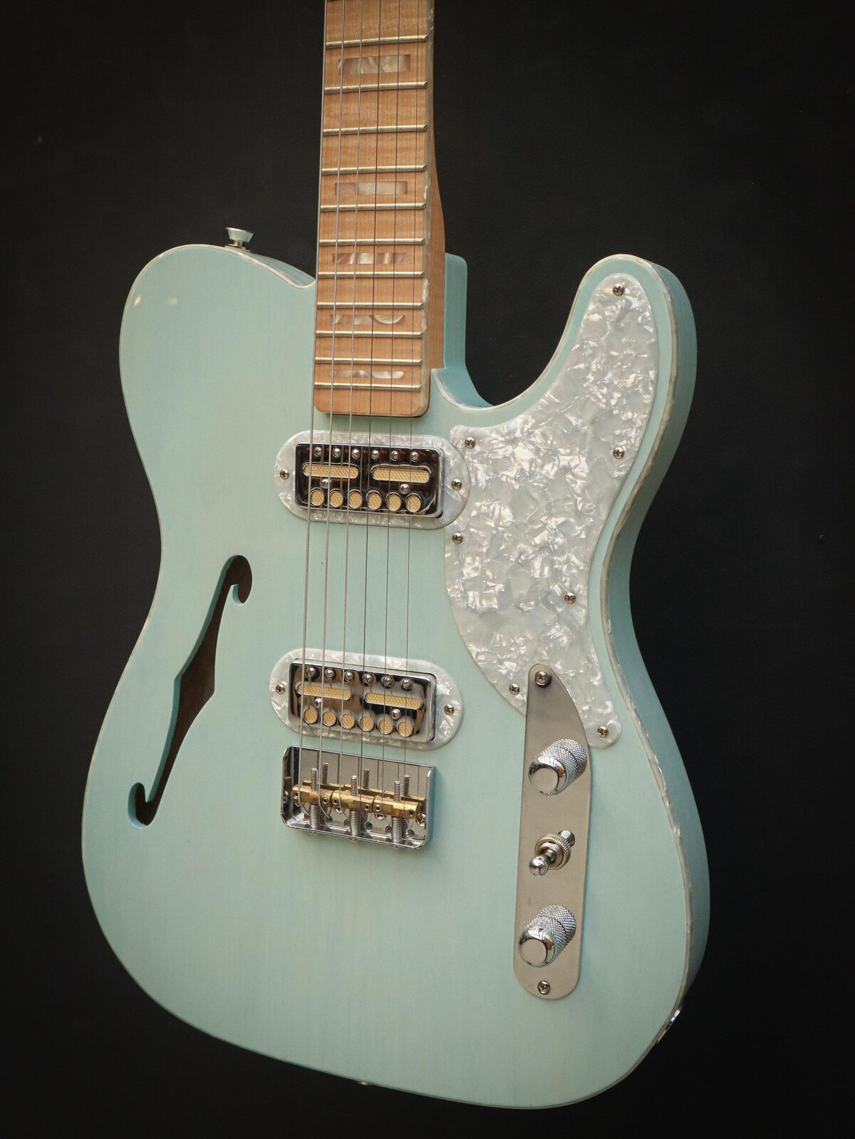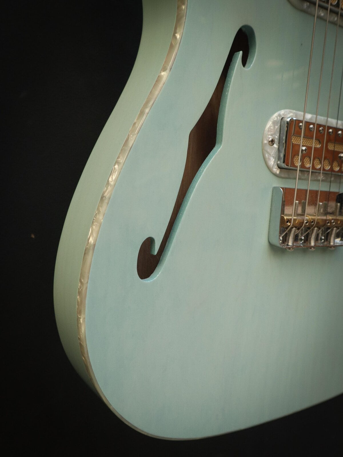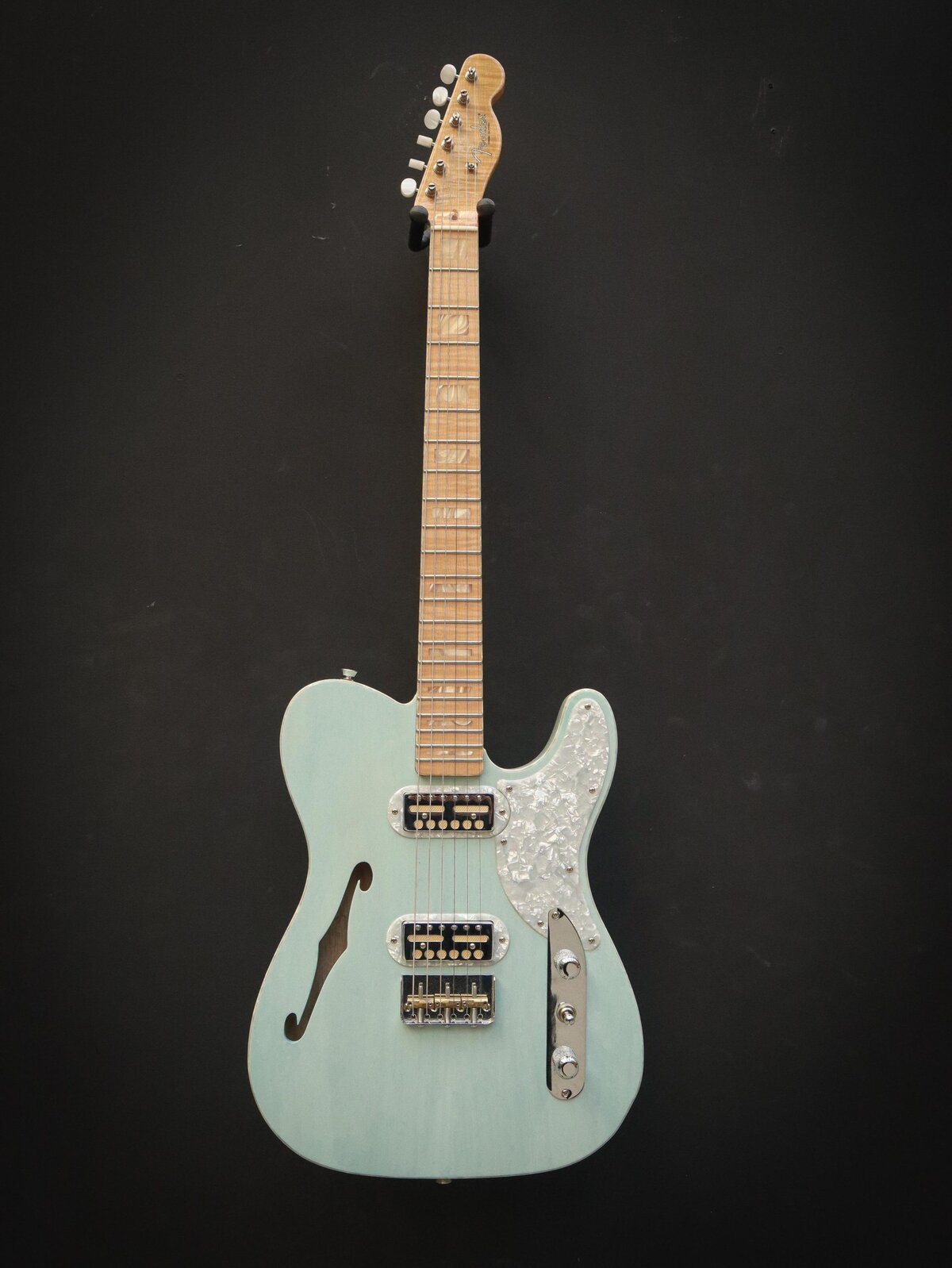 Pearl, nickel, and gold - the Parallel Universe Volume II Tele® Mágico isn't afraid to show off. Designed with Fender Custom Shop Master Builder Ron Thorn, the Tele Mágico exudes cowboy class with its extravagant appointments, figured woods and custom pickups. Pearloid pervades - generously used for binding, inlays, tuning pegs, custom pickup rings and the Cabronita pickguard. The neck is flame maple and the Thinline swamp ash body is accentuated by the Trans Daphne Blue or Trans Surf Green gloss finish choices in a twist on classic Fender color conventions. Two custom-designed Fender Gold Foil pickups deliver crystalline highs, expressive mids and creamy lows. The "cut" 3-saddle Tele bridge delivers classic Tele tone and feel despite its stylishly sleek silhouette. And the comfortable custom neck profile, which transitions from a "V"- shape to a "C"-shape as you make your way up the fingerboard, is ideally suited to both rhythm and lead styles. This guitar is in excellent condition and comes with a Fender hard case and case candy.Excellent